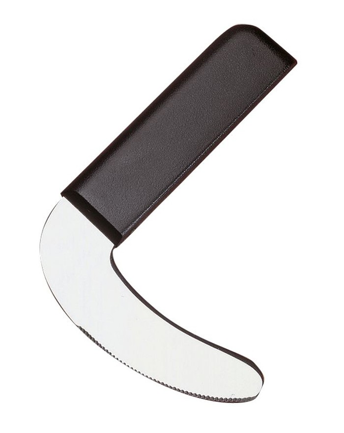 Le couteau cochoir a été créé pour permettre aux personnes ayant des difficultés de préhension de couper leurs aliments avec un mouvement de balancier. Couvert en acier inoxydable et manche en ABS. Garantie lave-vaisselle._x000D__x000D_Lame à 90° par rapport au manche.