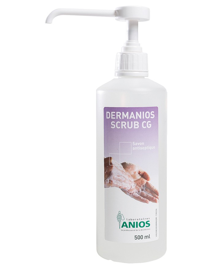 Flacon pompe de 500 ml de Dermanios Scrub CG : pour le lavage hygiénique des mains.