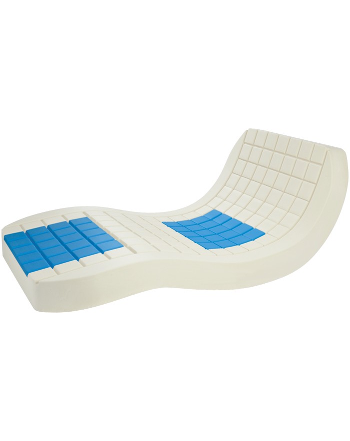 Version HE-V dotée de 2 inserts en mousse viscoélastique 80 kg/m³ en surface au niveau des zones sacrum et talons.